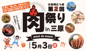 現在、様々な場所で配布しているチラシには、当日使える「お得なクーポン」が付いています!チラシをゲットした方は、忘れずに当日お持ちくださいね。イベント情報はこれからもどんどん更新していきます。最新情報を見逃さないよう、ぜひチェックしてください!5月3日は、みんなで三原の肉祭りを盛り上げましょう!
