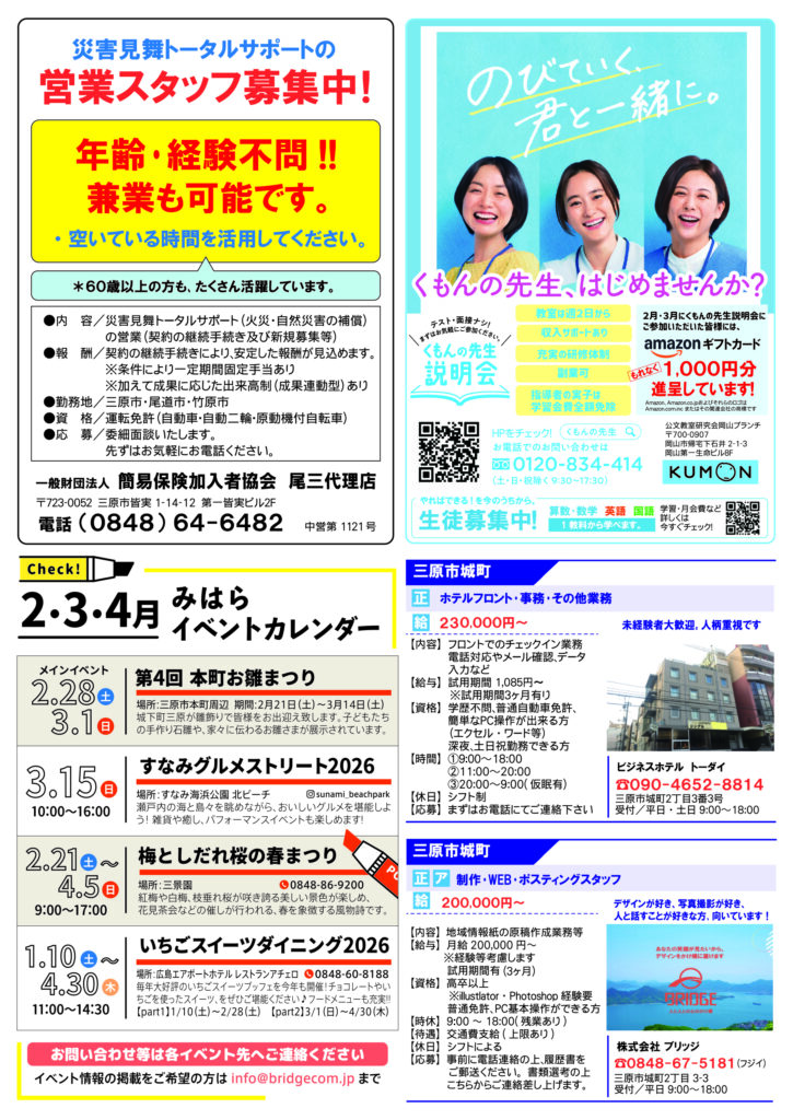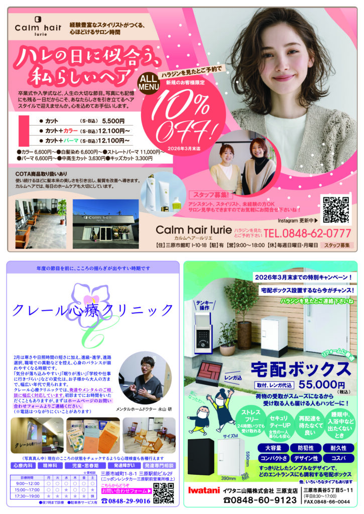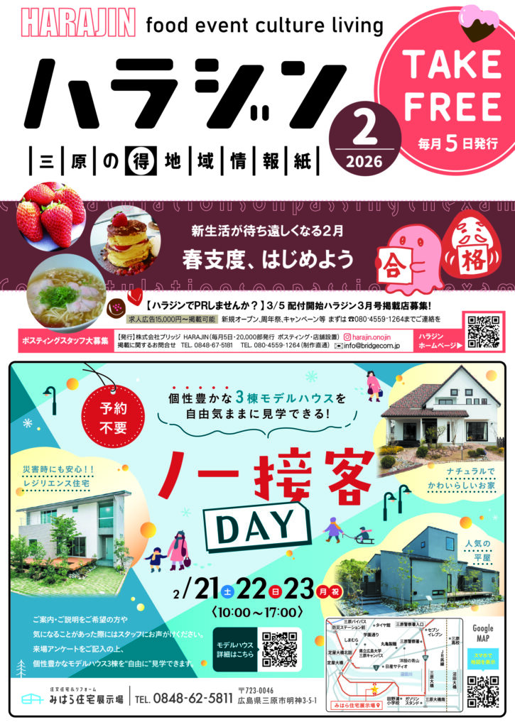 【三原市情報誌】ハラジン2026年2月号発行しました 2026 2/06 ハラジン 三原 2026年2月6日 harajin_2602_Bダウンロード ハラジン 三原 この記事が気に入ったら フォローしてね! Follow Me よかったらシェアしてね! URLをコピーしました! URLをコピーしました! 【三原市本郷南】おかだ/於香堂 関連記事 【三原市本郷南】おかだ/於香堂 2026年1月30日 【三原市情報誌】ハラジン2026年1月号発行しました 2026年1月5日 【三原市情報誌】ハラジン2025年12月号発行しました 2025年12月5日 【2025年5月4日(日曜日)】安芸高田 高猿神楽団 in 三原リージョンプラザ 2025年4月6日 【三原市】おにぎり屋にんにこ 2025年3月11日 【三原市】おむすびカフェわかな 2025年3月11日 やっぱりおむすびが好き!三原おむすび特集 2025年3月11日
